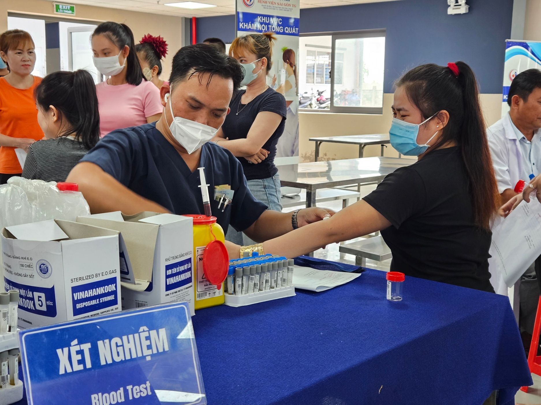 Health and well-being are core to building a productive and happy workplace. On July 26, 2025, Bethel Vina Co., Ltd. carried out its annual health check-up, transforming the newly renovated canteen area into a temporary clinic in collaboration with CÔNG TY CỔ PHẦN BỆNH VIỆN SÀI GÒN TG. All company employees—from factory workers to office staff—received full medical screening in a space carefully arranged for comfort and efficiency.